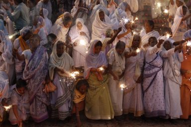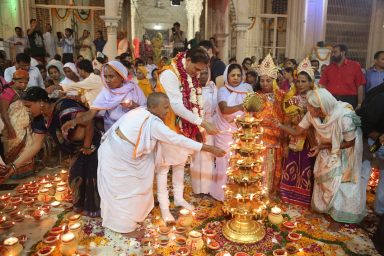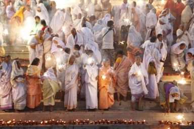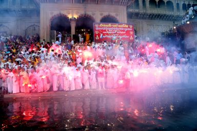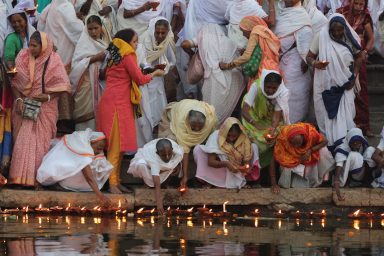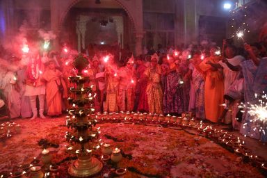 After decades of darkness, hundreds of year old widow shelters had a colourful riot of emotions, flowers and gulaal. Sulabh organised a Holi celebration for the widows, wherein approximately 800 widows smeared colours and ushered flowers upon each other for the first time. The taboo-breaking hues playfully ditched the white layers of oblivion. According to PTI reports, the ritual of widows celebrating the festival of colours among themselves began only in 2013, before which they were allowed to play Holi only with Thakurji (Lord Krishna). Since then it has been no looking back as the widows, colours and flower petals have been on a quantitative rise. Later the same year, sunset got redefined for the widows when the shelter houses were lit up on Diwali for the first time in history. The amber reflections of lights and fireworks marked their brilliant departure from the dogmatic world. All five widow ashrams at Vrindavan were illuminated with joy, ending the decades of darkness and social apathy.
